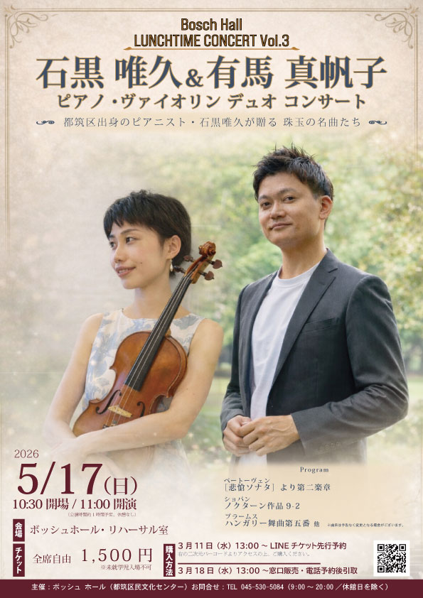 ボッシュ ホール ランチタイムコンサート Vol.3 石黒 唯久 & 有馬 真帆子