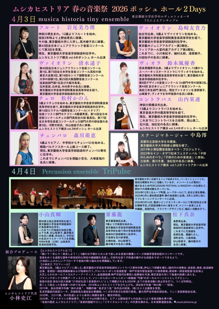 ムシカヒストリア 春の音楽祭 2026 ボッシュ ホール2Days ①春夏秋冬の情景を聴く 「ムシカヒストリア音楽的諧謔サロン」