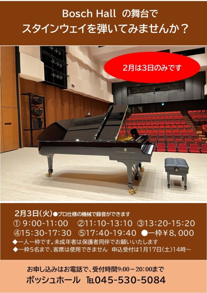 2026年初弾き! Bosch Hallでスタインウエイを弾いてみませんか?