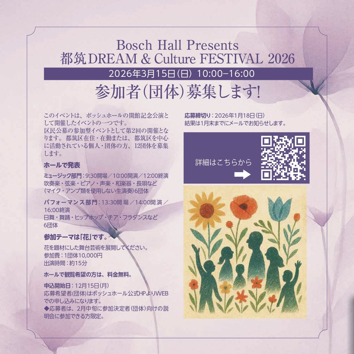 【受付終了】2026年3月15日(日)開催「都筑 DREAM&Culture FESTIVAL 2026 ホールの部」出演団体募集のお知らせホール -