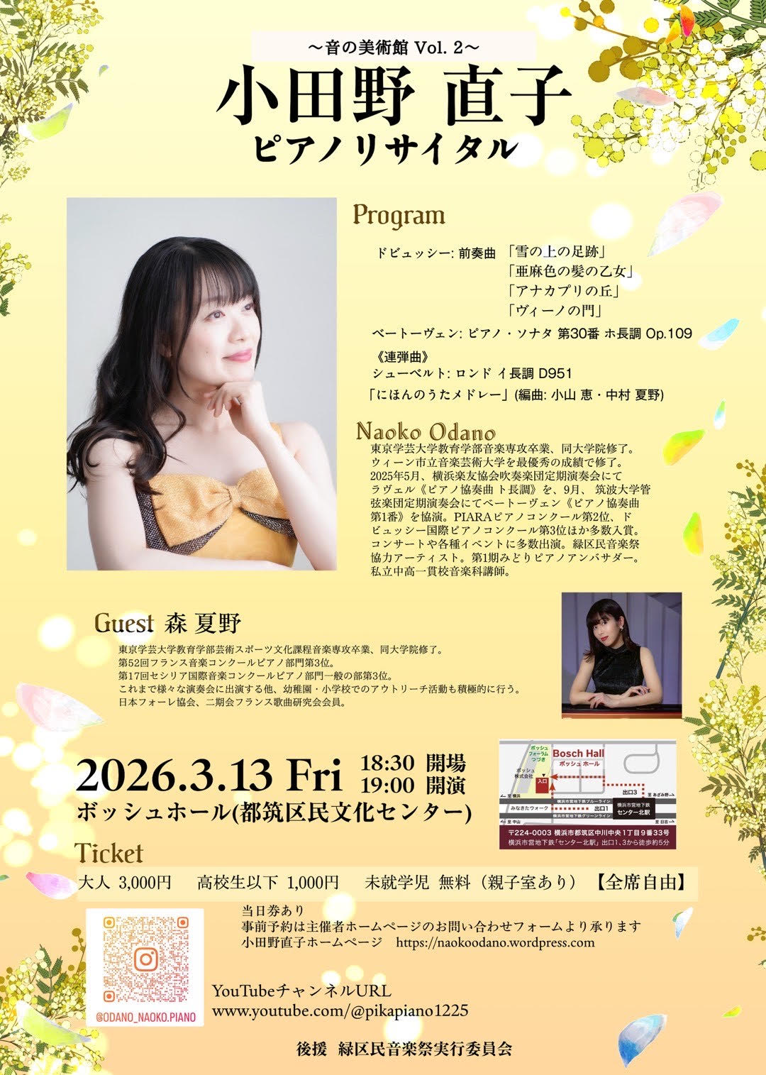 音の美術館vol.2 小田野直子ピアノリサイタル18:30開場/19:00開演ホールクラシック音楽コンサート